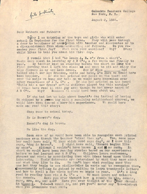 August 22, 1944 correspondence from Superintendent O.L. Emerick citing highlights of the 1944-45 school year. Highlights include: date of 1st day of school, compulsory attendance law, traffic laws around school buses while loading or unloading students, authorized school bus passengers