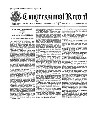 - EWP 1-4-1 Yr 1956 3-27 Congressman John Bell Williams of Mississippi against BRoiwn