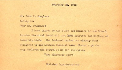 - EWP2-3Yr1946MayNoticeofJune7ElectoralBoardMeetingtoappointLeesburgTrustees