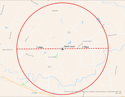 EWP 09 St. Louis with 3 mile It's estimated that the maximum distance students would have walked to this school is 3 miles one way. The graphic shows the area from which students may have walked to this school.
