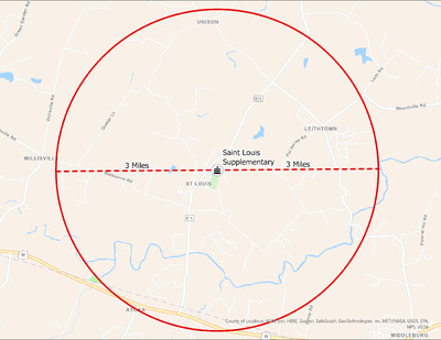 EWP 09 St. Louis Supplementary with 3 mile It's estimated that the maximum distance students would have walked to this school is 3 miles one way. The graphic shows the area from which students may have walked to this school.