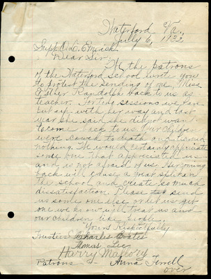 2.5.A Yr 1932 Jul 6 Waterford Wants Removal of Esther Randolph July 6, 1932 . Waterford Wants Removal of Teacher Esther Randolph