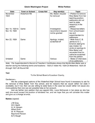 EWP 2-5B 2-5B Yr 1924 Nov Waterford Petition to Remove Miss Baber