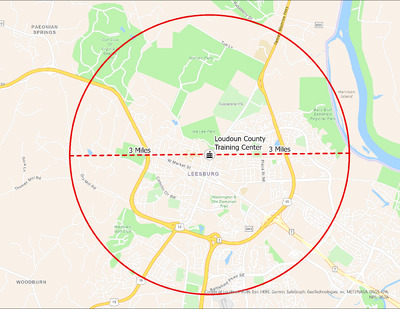 EWP 09 Loudoun County Training Center with 3 mile It's estimated that the maximum distance students would have walked to this school is 3 miles one way. The graphic shows the area from which students may have walked to this school.