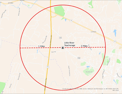 EWP 09 Little River Teacherage with 3 mile It's estimated that the maximum distance students would have walked to this school is 3 miles one way. The graphic shows the area from which students may have walked to this school. -