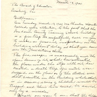 march, 1940, letter, board of education, lansbury, virginia, dangerous conditions, fire hazard, fire escape, oil drum, safety, segregation