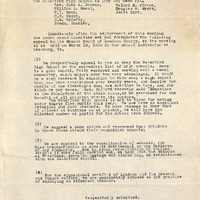 At a meeting of the citizens of Waterford, Va. and community, on March 13, 1930 called for the purpose of discussing the proposed changes contemplated being made in our schools of Loudoun County, after receiving a copy of the recommendations from the County Survey Committee, the following Committee was appointed to act in behalf of the Waterford High School as they may deem fit. Rev. John A. Bowman, Talbot E. Pierce, William S. Smoot, Douglas N. Myers, W.I. Mann, James Carr. C.N. Mason, R.E. McCarty, Frederick Stabler, immediately after the adjournment of this meeting the above named Committee met and formulated the following appeal to the School Board of Loudoun County, at its meeting to be held on March 18, 1930 in the School Auditorium at Leesburg, Va. (1) We respectfully appeal to you to keep the Waterford High School on the accredited list of high schools. Here is a good school, fully equipped and serving well a rural community, which enjoys none too many advantages. It would be a step backward in education to take away a high school that has been established over twenty years and deprive the pupils of the advantages they are entitled to have, and for which we pay taxes. Gov. Pollard recently said "Education is the foundation of the whole state, to be exercised for the benefit of all children within its borders. The Waterford High School is not to blame for having under thirty-five pupils this year. We now have an excellent Principal and good teachers. We have reasons to know that if allowed to continue as at present, we will have the allotted number of pupils for the school term 1930-31, (2) We suggest a zone system and recommend that children in these zones attend their respective schools. (3) We are opposed to the consolidation of schools, and bus transportation as morally detrimental to the children of any community But in event consolidation of smaller schools is more fully carried out. we urge that the schools at Wheatland, Paeonian Springs and Clarks Gap, be consolidated with the Waterford school. (8) For the educational benefits of Loudoun and its present and future welfare we are unanimously opposed to the practice of employing an itinerant teacher. Respectfully submitted. Rev. John A. Bowman, W.S. Smoot, ( (Committee) W.I. Mann, C.N. Mason, R.E McCarty, Fredk. Stabler, Talbot E. Pierce, Douglas N. Myers, James Carr.