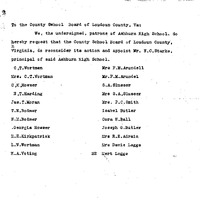 In this letter, addressed to the County School Board of Loudoun County, Virginia, the undersigned patrons of Ashburn High School express their request for the reappointment of Mr. N.S. Starke as principal of the school. The list of signatories paints a picture of community support for Mr. Starke, with a diverse range of individuals including parents, teachers, and other community members advocating for his return.