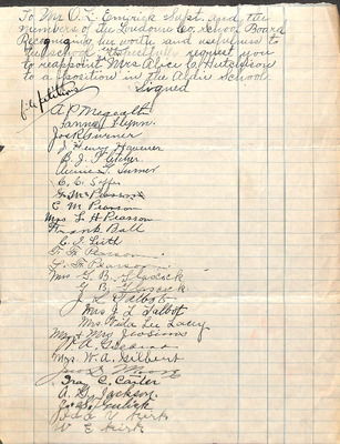White Petition Pleasant Valley 1928 04 18 Teacher Request